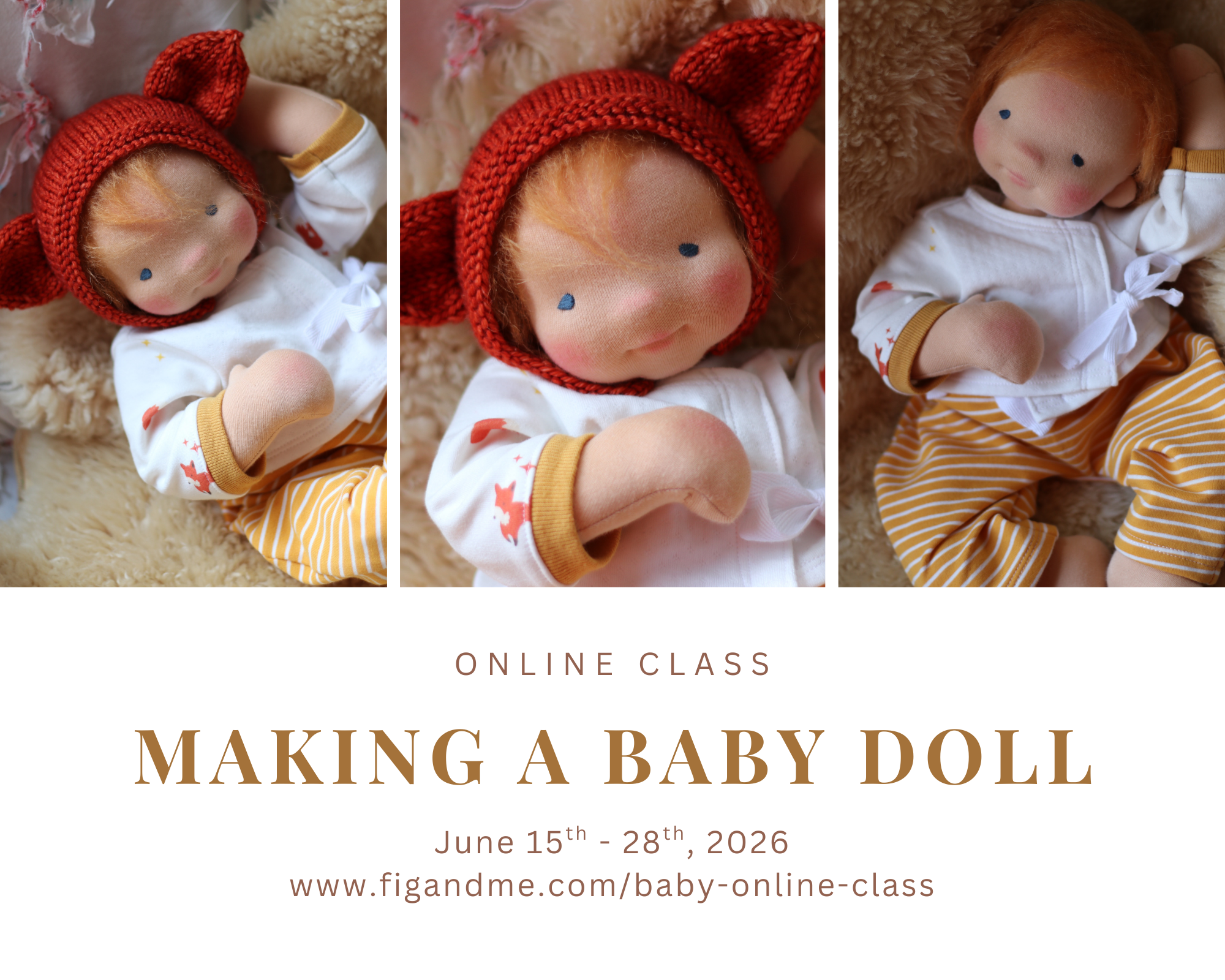 Online classes and workshops for dollmaking with natural fiber art dolls. Visit www.figandme.com/workshops
